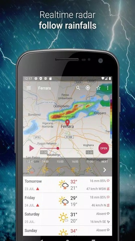 3B Meteo MOD APK (Unlocked Premium) provides users with highly accurate weather forecasts through a real-time map system. Forecast information is always updated regularly by the application 24 hours a day thanks to Nowcasting technology. In addition, the application also displays detailed weather forecasts in very small areas through satellite images and radar data.