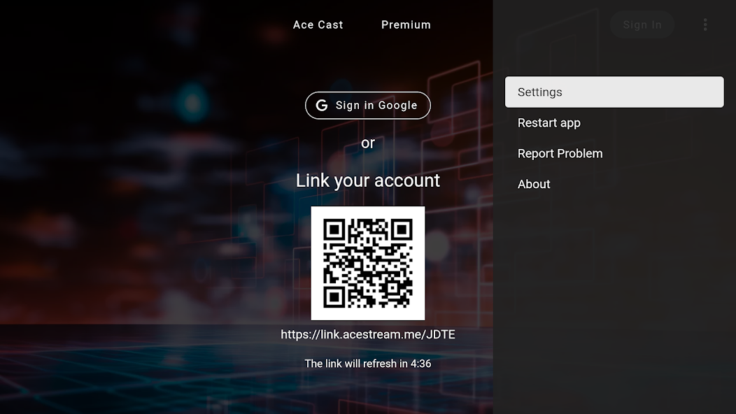- Launch Ace Stream Mod. Premium features will be active without further configuration.