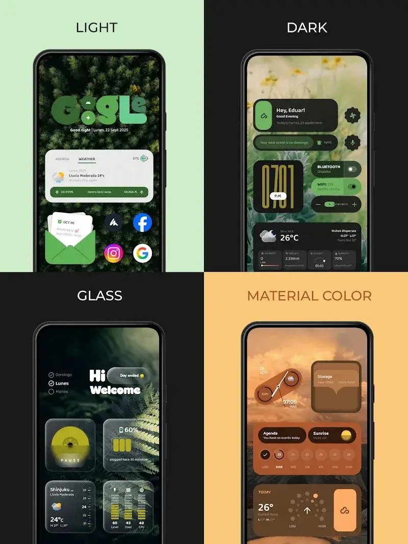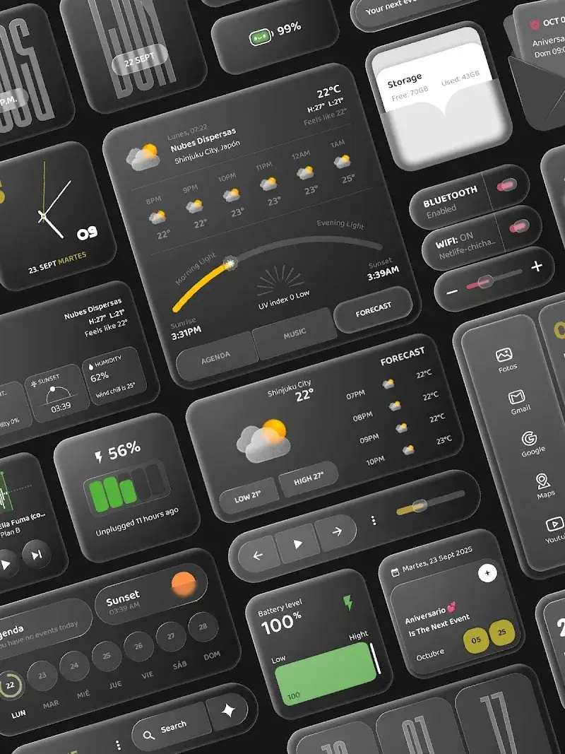 Aether Widgets KWGT Mod is a widget pack for KWGT Pro Key, designed for users who want to customize their home screen with detailed, animated widgets. It targets power users and themers who require extensive visual control beyond standard launcher options. The app functions as a content pack, requiring the separate KWGT Pro app to apply widgets.