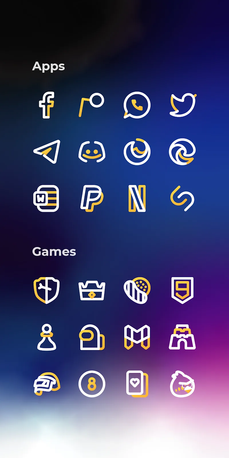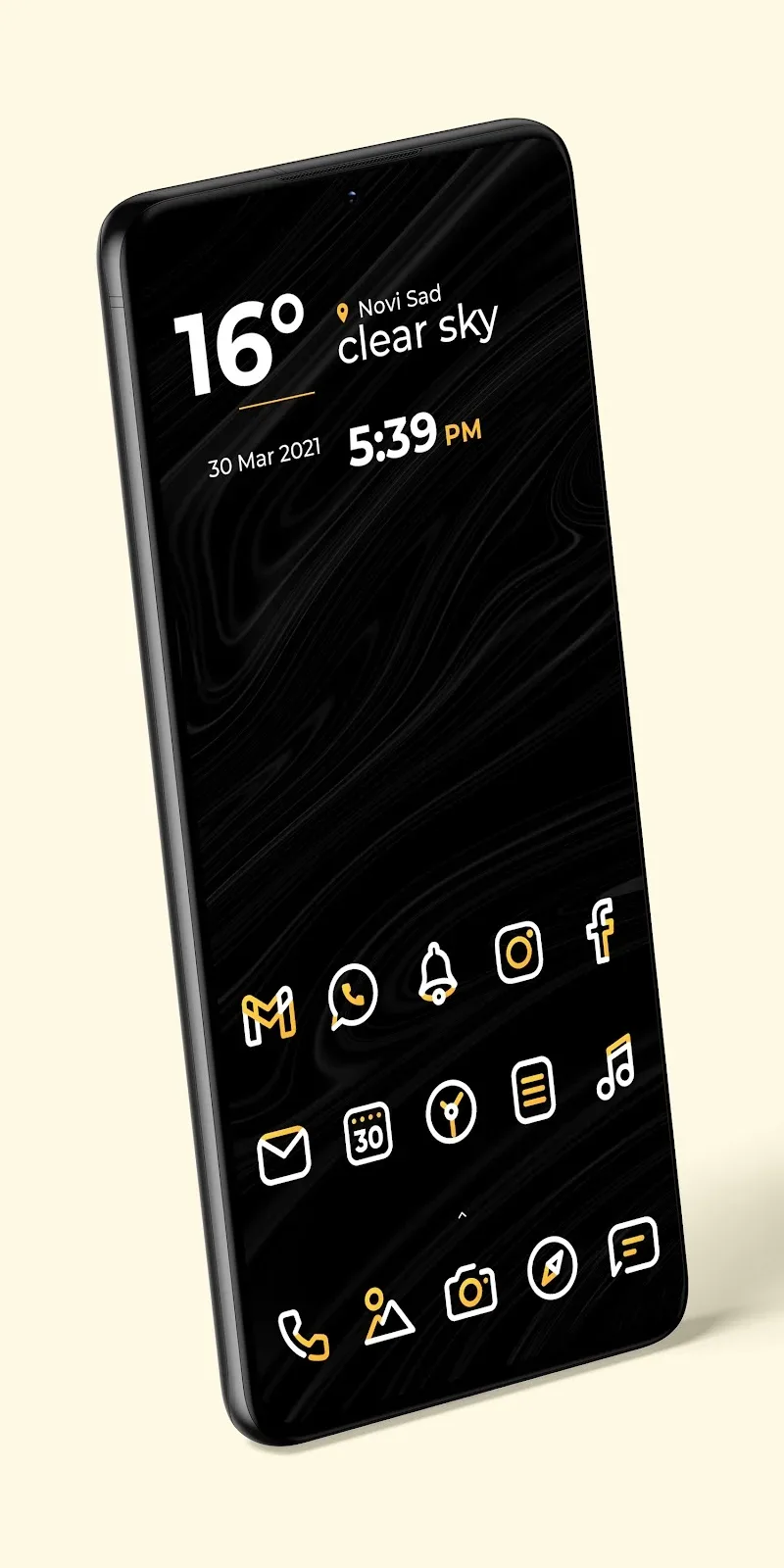 Aline Yellow linear icon pack Mod replaces standard app icons with a cohesive set of yellow-themed linear designs. It targets users seeking a minimalist, monochromatic aesthetic for their Android home screen. The app requires a compatible launcher that supports third-party icon packs.