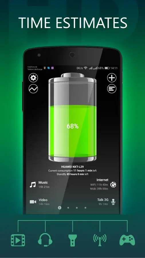Battery HD Pro Mod is a diagnostic utility for Android that monitors battery health, temperature, voltage, and detailed consumption graphs. It is designed for users who need precise, technical data about their device's power system beyond the standard system percentage indicator. The app categorizes battery drain by process and provides voice alerts for charging events.