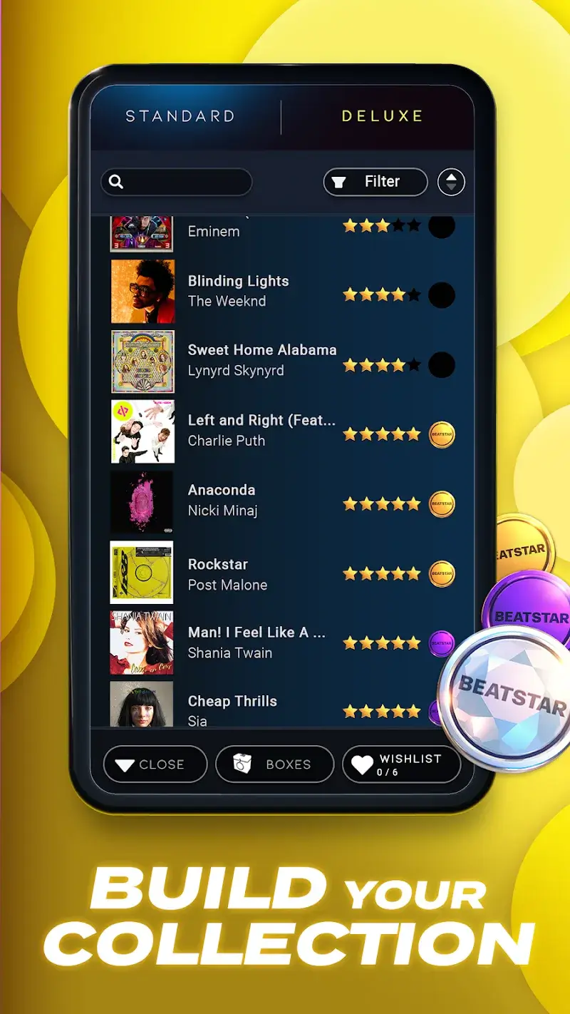 Beatstar Mod is a rhythm game where players tap on descending tiles to the beat of licensed songs. The core loop involves hitting notes accurately to build scores and unlock new tracks. It targets casual players and music enthusiasts who enjoy timing-based gameplay similar to Piano Tiles, set within a music streaming and collection framework.