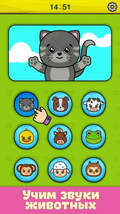 Bimi Boo Baby Phone for Kids Mod es una aplicación de aprendizaje temprano diseñada para niños de 1 a 5 años. Simula la interfaz de un teléfono con botones grandes y coloridos que, al ser presionados, activan animaciones y sonidos de animales, números y vehículos. Su función principal es la estimulación sensorial y la introducción básica a la causa y efecto. La versión oficial incluye contenido limitado detrás de pagos o anuncios, mientras que la versión modificada elimina estas barreras.