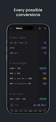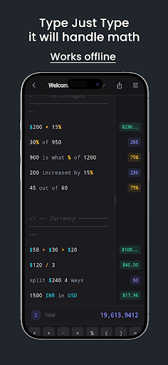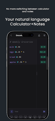 CalcBook Mod is a natural‑language calculator that parses free‑form text and returns computed results instantly. It targets freelancers, travelers, students, and anyone who prefers word‑based input over traditional button entry. The official version limits premium themes and displays occasional ads; the mod version lifts those constraints.