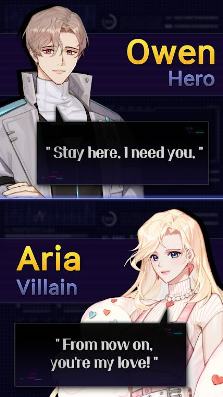 The main character system of Code : Romance Story Game includes 5 people. They are Adam, Dante, Owen, Aria, and you. Adam is the head of Hades Corporation. Has a charming and cold appearance like a consul. Dressed in a luxurious black fur coat and power vest. Dante is the commanding officer of the god Zeus with supreme authority. This is one of the main character defenders in the game. Owen is a mysterious man who holds many supreme secrets. With an attractive, romantic face. Aria is the villain in this game. She was surprised when she confessed to the heroine.