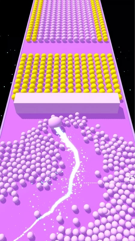 The simple gameplay mechanism has created the strength of Color Bump 3D MOD APK, almost all ages can participate in the experience and enjoy what this genre brings. Entering the poetic road, you control a rolling ball in the direction of the finger placed on the screen. The changing distance is also shown by the white strip behind the ball, based on which the player can align it appropriately. Remember, you can only touch obstacles of the same color and if you accidentally touch obstacles of different colors, you will fail. There is no chance for the player to start from the collision position but will have to play again, which puts a lot of pressure on you.