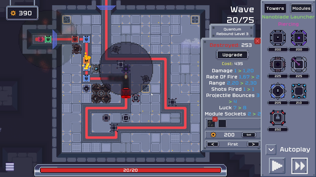 Defendron Mod is a single-player tower defense game set in a cyberpunk metropolis. Players defend a vertical city across five distinct floors by strategically placing and upgrading automated turrets against waves of enemies. The mod APK version modifies the in-game economy and progression systems.