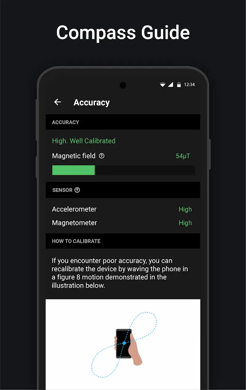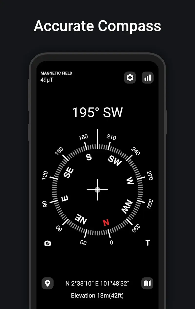 The mod is activated immediately upon launching Digital Compass Mod. No manual steps are required; the premium features are integrated directly into the app's interface. The modded APK bypasses the license verification check that normally gates the premium tier.