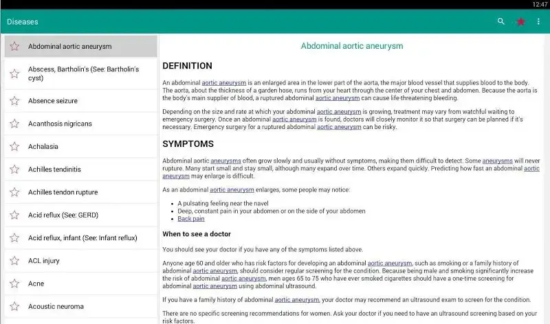To access the unlocked premium content, simply open any disease category listed beyond the letter 'C' in the alphabetical index; these entries are gated in the official version but are fully accessible in this mod.