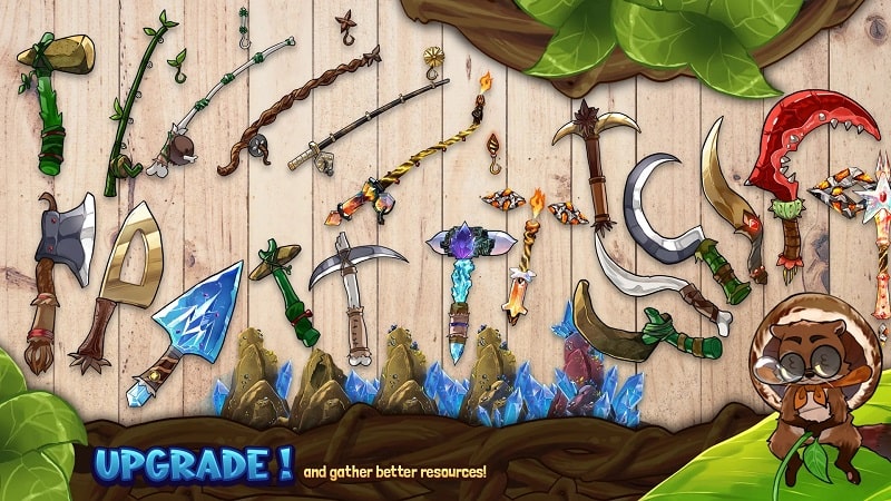 You’ll be led to quarries and orchards to learn the plants to harvest and find essentials. Do the mining tasks that the squirrel gives you to get used to the game. Go fishing, pick fruits, etc., to find food to survive. Characters are assigned stub pickaxes, and you learn how to use them. Using simple operations, ore blocks will be mined by the character. After mining hard, you will get items and gems;… Then you will need to go and collect trees in the forest on the island by manipulating an ax to harvest wood. The way you use the ax to collect the trees will be similar to the operations you use the pickaxe. Go to the lake, the sea to fish for fish to make food for your meal. Just get a fishing rod; you can catch fish.