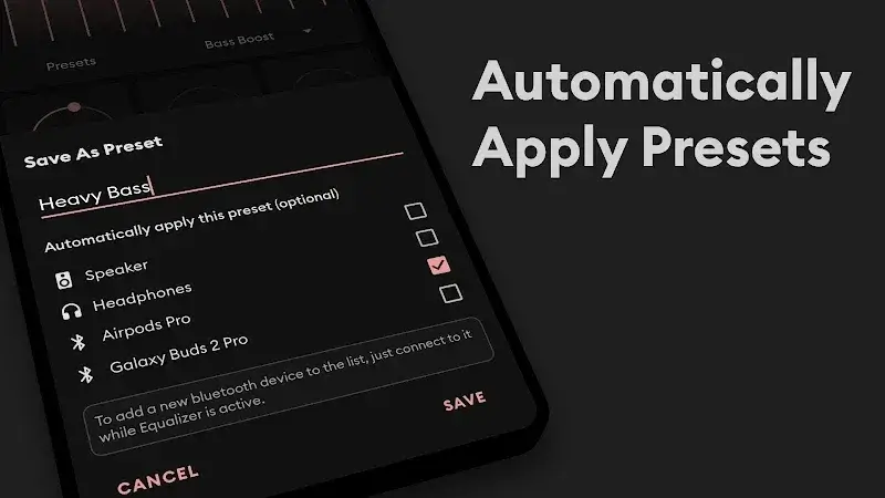 The equalizer effects may not apply to audio routed through certain Bluetooth codecs or USB DACs, depending on the specific Android device and its audio stack. On some devices, the system may automatically disable the equalizer when battery saver mode is activated. Clearing the app data or cache will not revert the mod unlocks; the features remain available. The mod is designed for the local app only and does not affect or modify any online services.