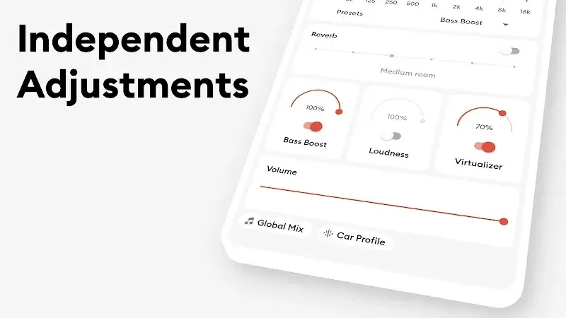Flat Equalizer Mod is a system-wide audio equalizer application for Android. It applies equalization, bass boost, virtualizer, and volume boost effects to all audio output from the device, including music streaming apps, videos, and games. The app is designed for users seeking granular control over their device's audio profile without requiring root access.