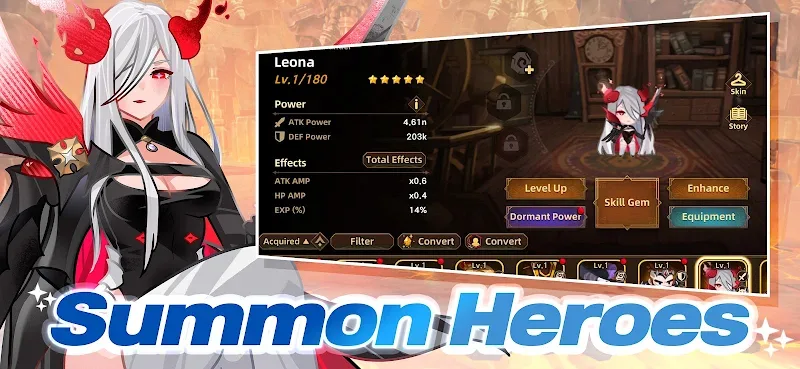 Fortress Saga Mod is an idle role-playing game where players manage a hero party, automate combat in dungeons, and upgrade a fortress. The target audience is players seeking progression-based RPG mechanics with minimal active input, set within a fantasy anime aesthetic. The core loop involves collecting heroes, equipping gear, and deploying teams to generate resources over time.