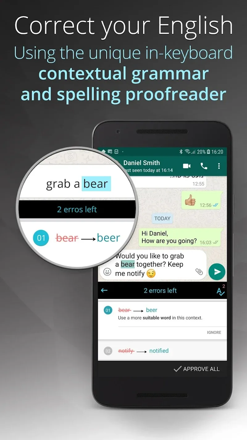 Activation is automatic upon installation of the modded APK. The premium features are integrated directly into the keyboard's suggestion bar and settings menu, with no additional login or activation steps required. The Ginger Keyboard Mod mod functions as a direct replacement for the official version.
