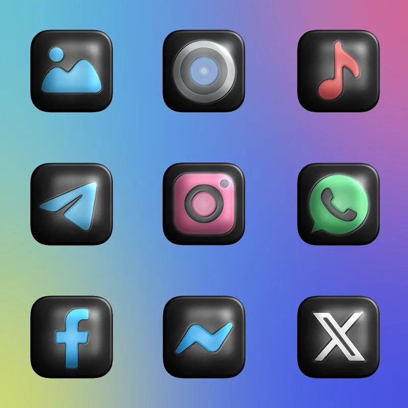 Glossy Dark 3D Icon Pack Mod is a personalization tool for Android that delivers a cohesive set of dark-themed, three-dimensional icons designed to replace system and app icons on supported launchers. It targets users seeking a uniform, modern aesthetic for their home screens. The app functions as a container of graphical assets, requiring a compatible third-party launcher like Nova or Lawnchair to apply the icons.