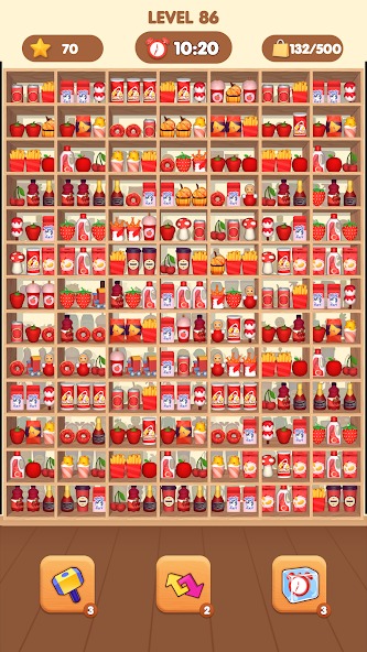Although the game is just about combining and destroying items, not everyone who plays can win. Because there are countless different items and many colors on the shelf, it can cause many people to get confused and choose the wrong merging item. When there is no space on the shelf for you to combine, then you will lose. Therefore, while playing, you need to pay attention to always leave empty areas on the shelf, which will be the door for you to win. The goal of Goods Mix Puzzle Master MOD APK is just to remove all the items on the shelf, so there are many ways for players to complete it quickly. But when you participate in high levels, its complexity will also increase. The items on the shelf also become more diverse and they can be stacked on top of each other, when you destroy the first layer, the items below will be pushed up.