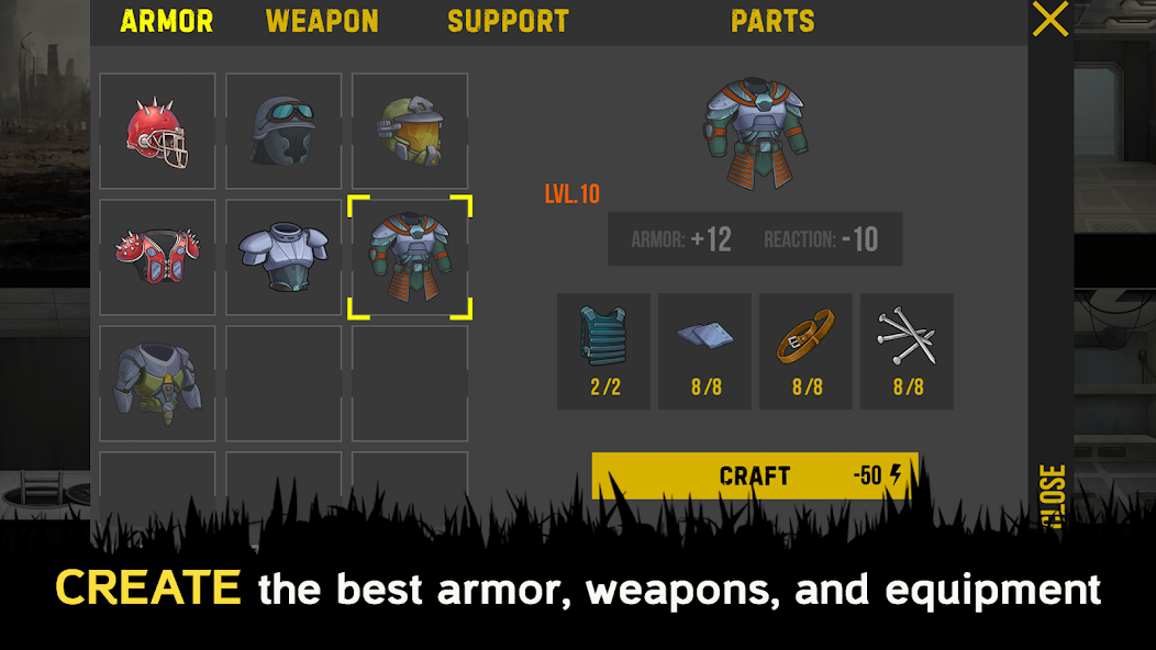 Last Battlefield Earth Mod es un simulador de supervivencia RPG con gráficos 2D dibujados donde el jugador combate contra robots y alienígenas en diversos escenarios. El objetivo central es fabricar equipo raro para proteger al personaje y sobrevivir a oleadas de enemigos. La mecánica principal gira en torno a la recolección de recursos, la creación de armaduras, cascos y armas, y la gestión de la salud durante los combates. Está dirigido a usuarios que buscan una experiencia de supervivencia RPG de acción directa sin complejidades de mundo abierto.