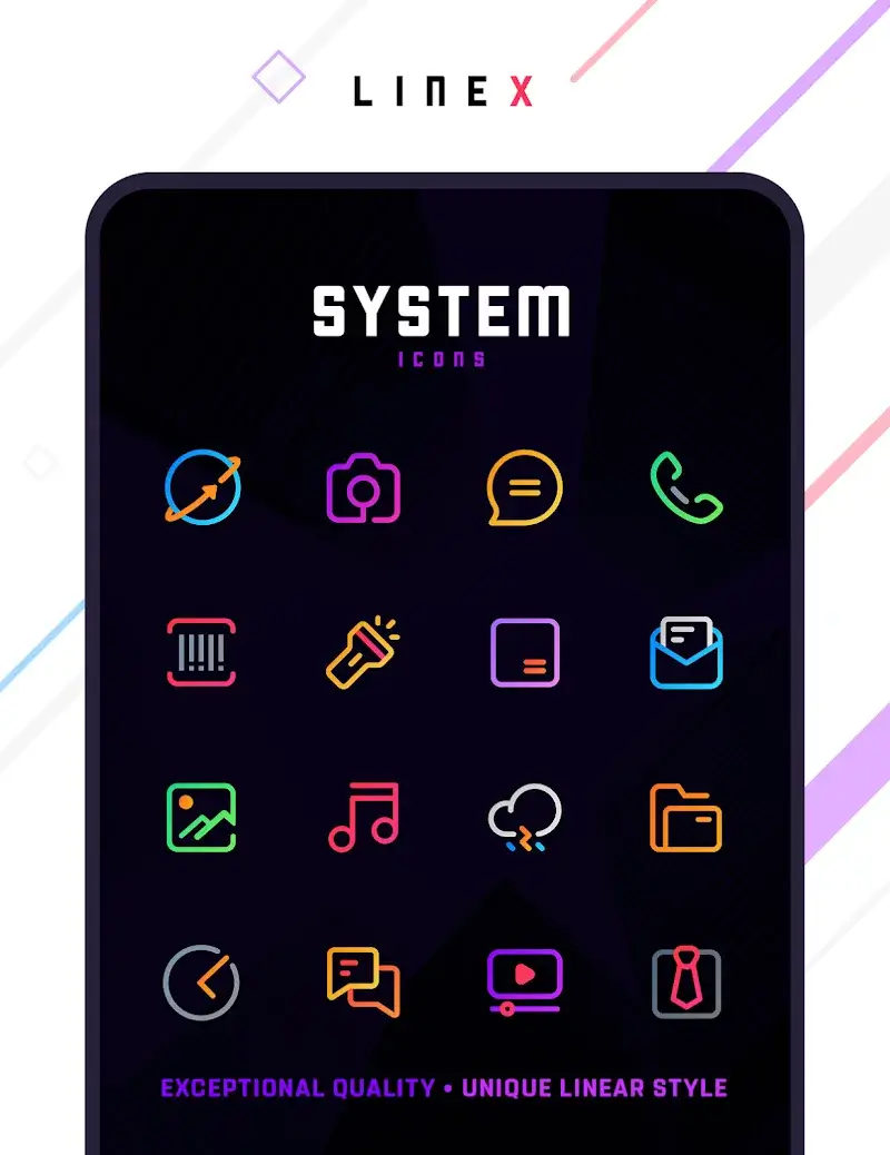 LineX Icon Pack Mod is a personalization tool for Android that provides vector-based icon packs and wallpapers to replace system app icons. It targets users who want to customize their device's home screen and app drawer without rooting. The app requires a compatible launcher that supports third-party icon packs, such as Nova, Lawnchair, or Hyperion.