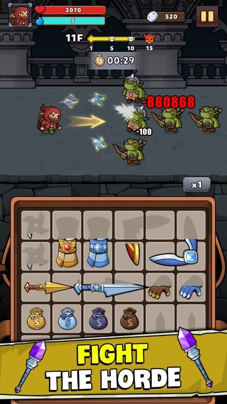 The path to becoming an unbeatable adventurer is open to you, players need to find some tricks to make this process easier. Loadout Warrior APK 3.1.3 allows you to carry up to nine items but it requires you to defeat monsters in different stages to unlock. There are many types of weapons and rarities, powers are divided into different ranks. Usually purple will give you better efficiency in combat. With all the similar weapons, you can pair them together to create a stronger version. Download Loadout Warrior MOD APK to create the perfect merging strategy to upgrade the power of different weapons and defeat the enemy.