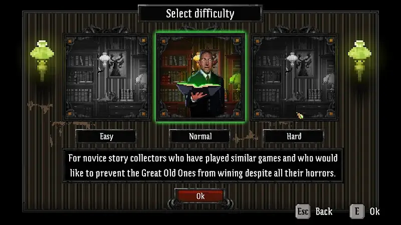 The primary mod features are integrated directly into the game's core data. Upon launching Lovecraft's Untold Stories Mod, the modified resource values and unlocked content are active without a separate menu interface. The player's inventory will reflect the full item list, and character selection screens show all investigators as available.