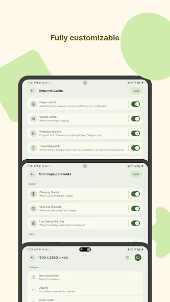Material Capsule Mod requiere Android 12 o superior. La aplicación necesita permisos de superposición y accesibilidad para funcionar correctamente. El almacenamiento estimado es de 30 MB después de la instalación. No se requiere root.