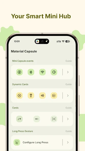 Material Capsule Mod es una aplicación de personalización de sistema para Android que modifica el área de la cámara frontal perforada o la cápsula. Permite superponer controles, gestos y widgets sobre o alrededor de este espacio físico. Está dirigida a usuarios que buscan funcionalidad adicional y personalización estética en la interfaz de su dispositivo, específicamente en la región de la muesca o cápsula.