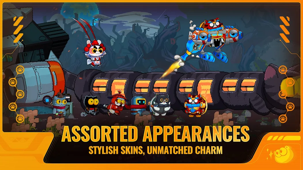 Meow Hunter" is an explosive action-platformer where you become a fluffy hero in a stylish spacesuit, traveling through the galaxy and taking on enemies. You can look forward to an exciting journey during which you can use 100 items to upgrade your character. Battle enemies in close and ranged combat to earn even more loot for the race. Join the game and help your character gather resources and energy while traveling between planets.