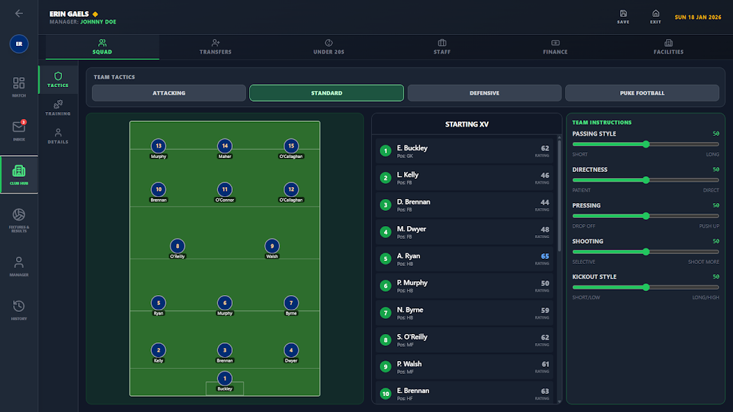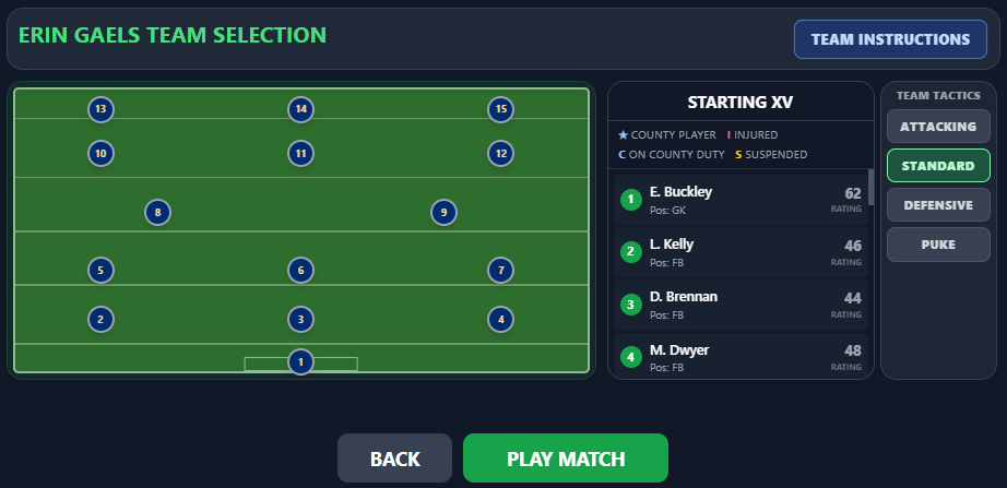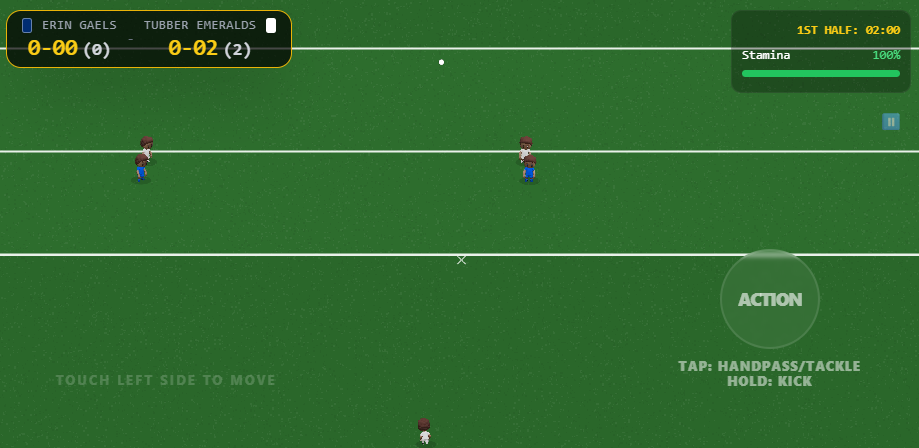 Micro Gaelic Football Mod is a sports simulation focused on Gaelic football mechanics. It uses a one-button control scheme where press duration dictates player actions like passes, strikes, and dribbles. The aftertouch system allows for mid-air ball trajectory adjustments. The target audience is players seeking a fast, arcade-style sports experience with simplified controls but tactical depth.