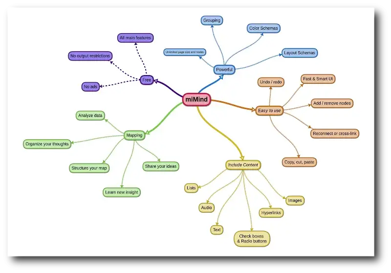 miMind Mod es una aplicación de productividad diseñada para la creación de mapas mentales y diagramas de flujo. Su función principal es proporcionar un lienzo digital estructurado para organizar ideas, proyectos y notas jerárquicamente. Está dirigida a estudiantes, profesionales y cualquier usuario que necesite visualizar información de forma clara y conectada. La aplicación opera dentro de la categoría de herramientas de pensamiento visual, ofreciendo un conjunto básico de funciones en su versión gratuita y características avanzadas tras un pago.