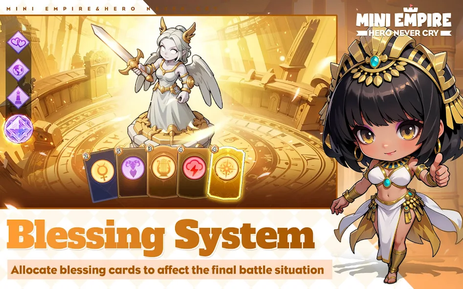 Mini Empire: Hero Never Cry - where every player becomes the architect of history, and every battle is a chance to write a new chapter in the chronicles of great civilizations. In this world where the past meets the present, you will summon the greatest warriors and strategists of all time to participate in a global card battle that goes beyond simple competition. Legends from Zhu Ge Liang to Caesar, from Cao Cao to Alexander the Great are gathered here. These heroes, each embodying the spirit of their era, now stand shoulder to shoulder to fight under your command. This is not just a battle; it's a collision of cultures, strategies, and eras, where as the commander-in-chief, you will decide whose wisdom and strength will prevail. Create unique skill combinations that reflect your play style. Whether it's aggressive tactics, sophisticated control, or deep strategy, your approach to the battle can change the course of history.
