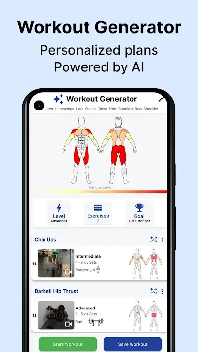 The modded APK requires Android 7.0 or higher. It does not require root access. The installation file is approximately 64 MB, with additional storage needed for cached exercise videos and user data. Network permissions are required for loading video content and exercise databases, which is consistent with the official app.