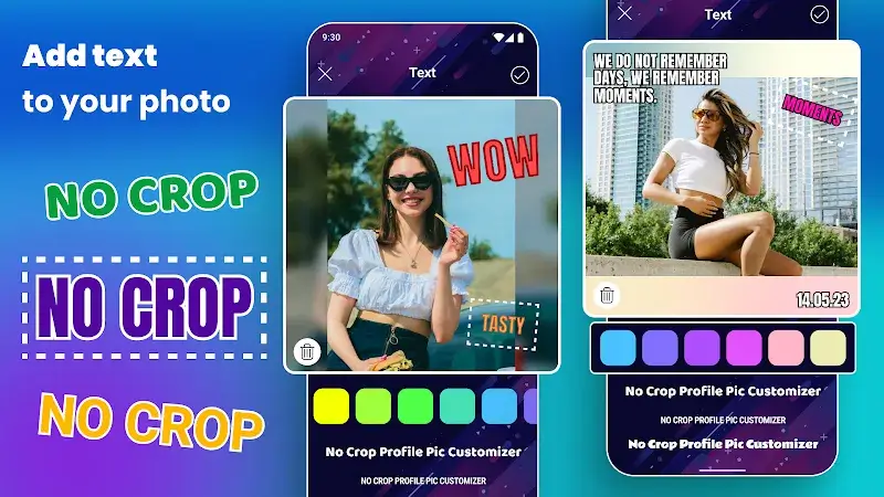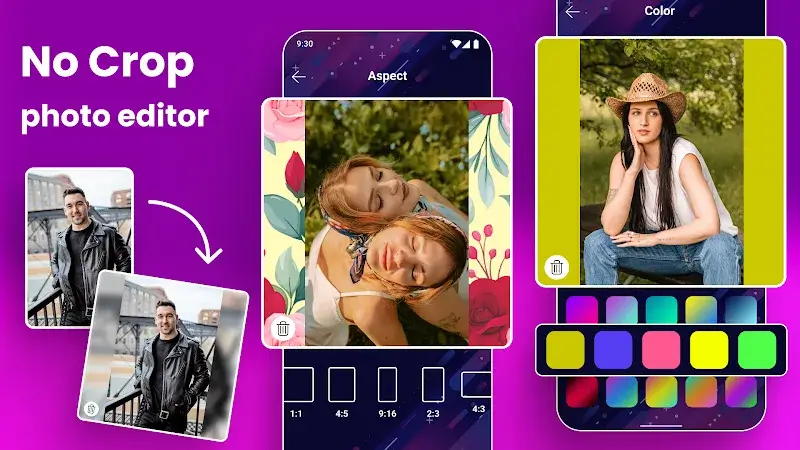 No Crop Editor Mod is a utility for adjusting image aspect ratios and applying filters without cropping the original content. It targets users who need to post images to platforms with strict dimension requirements, such as Instagram stories or YouTube thumbnails, while preserving the full composition. The app functions as a layer-based editor where users can resize, add backgrounds, and apply stylistic effects.