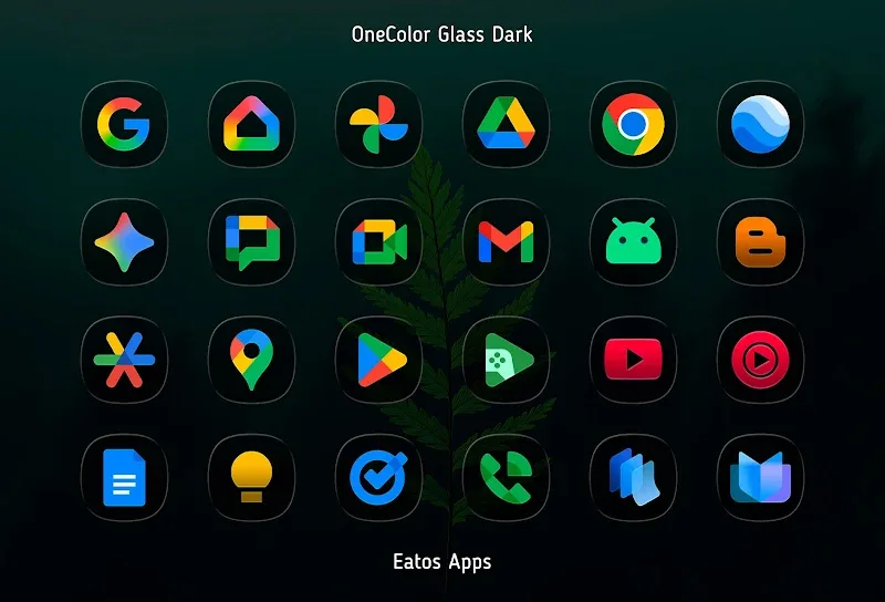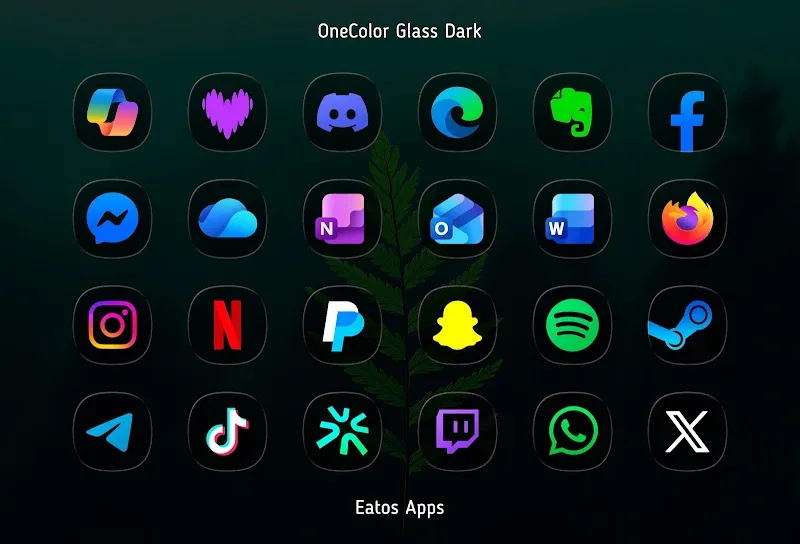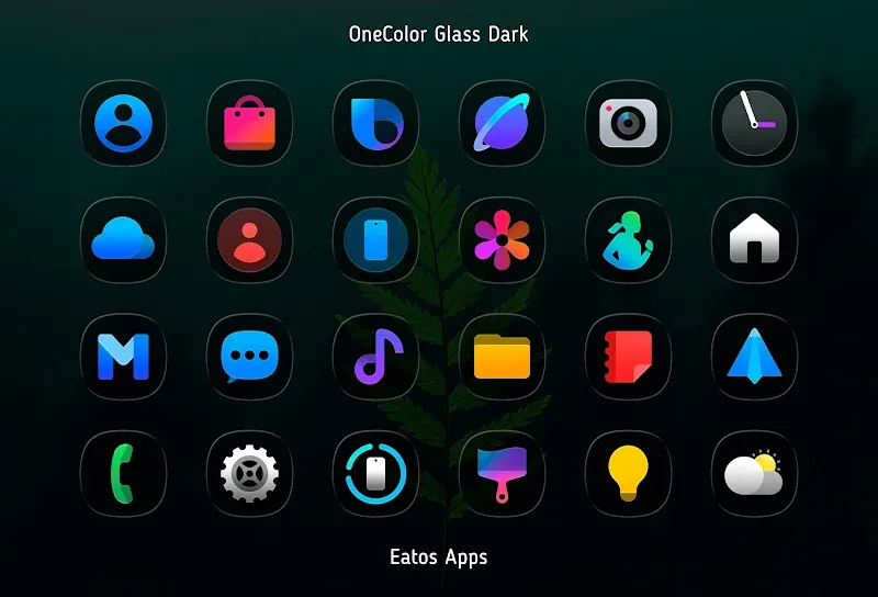 OneColor GlassDark Icon Pack Mod es una aplicación de personalización de Android que proporciona un conjunto de iconos minimalistas con un estilo de cristal oscuro y degradados de un solo color. Está dirigida a usuarios que buscan una estética de interfaz coherente y oscura, reemplazando los iconos predeterminados del sistema y de las aplicaciones. Funciona con la mayoría de los lanzadores populares.