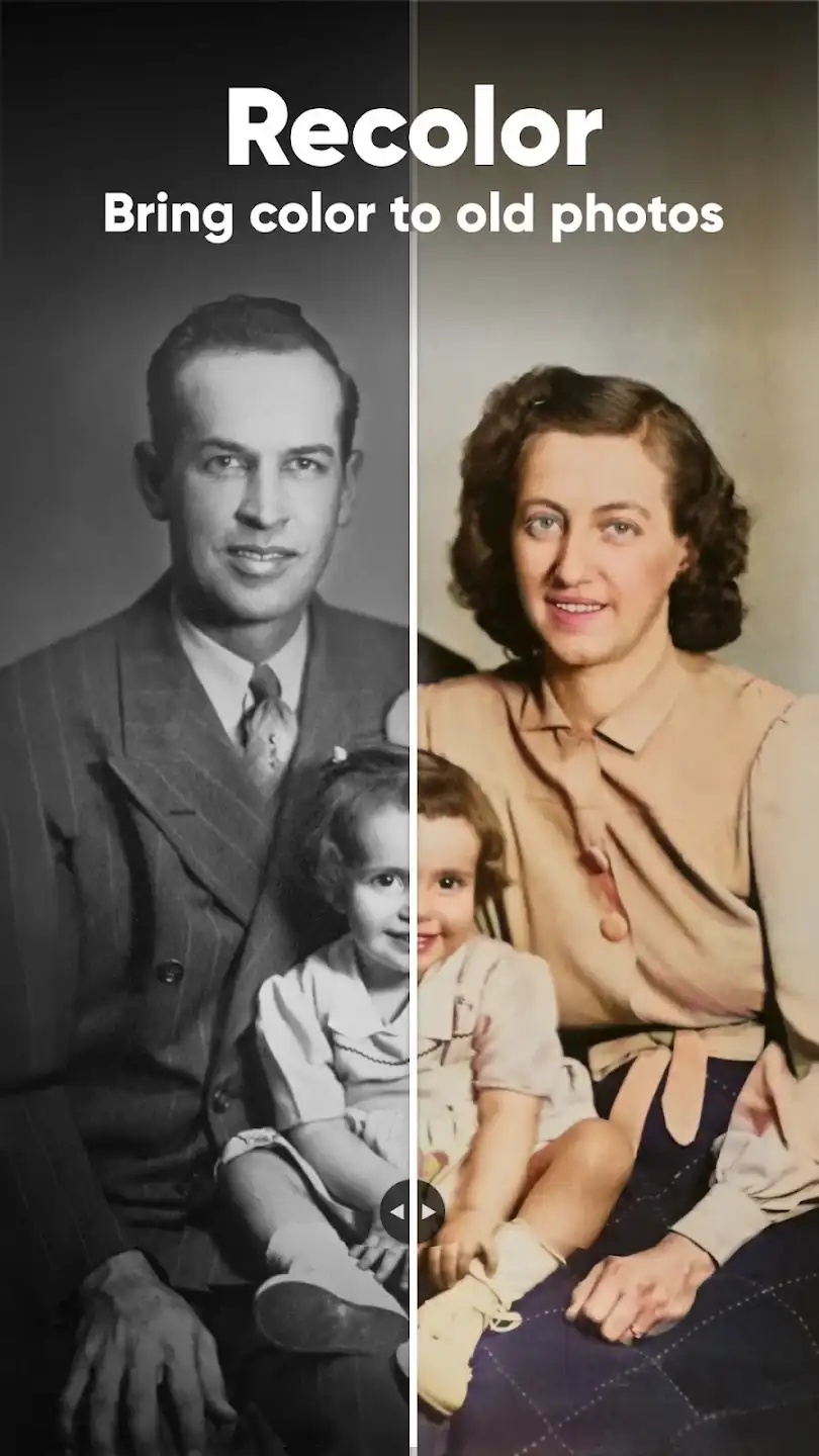 Don’t worry if you want to change photos that have lost color over time, this app’s Recolor feature will help you. Accordingly, this feature recreates the original bright colors of photos, thereby bringing life and beauty to them.