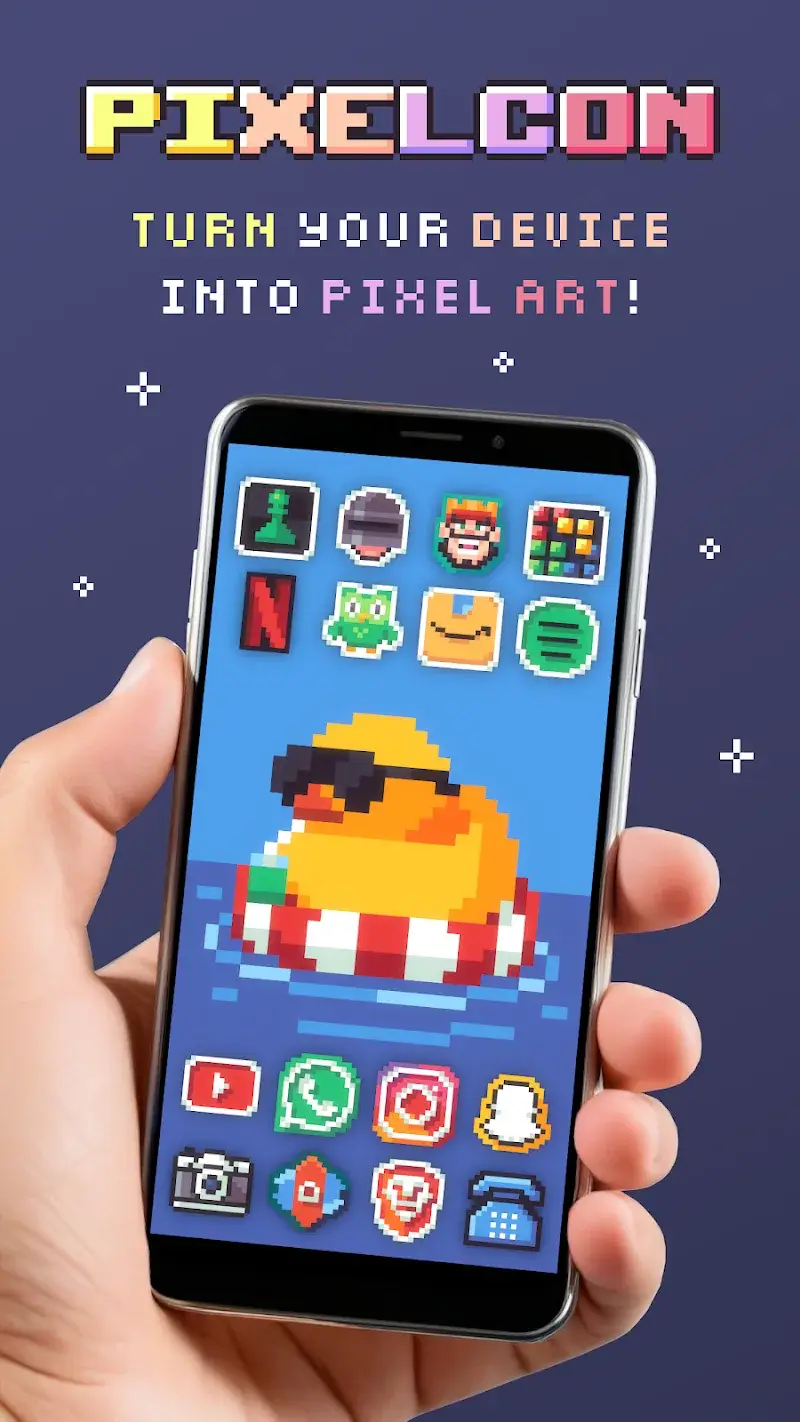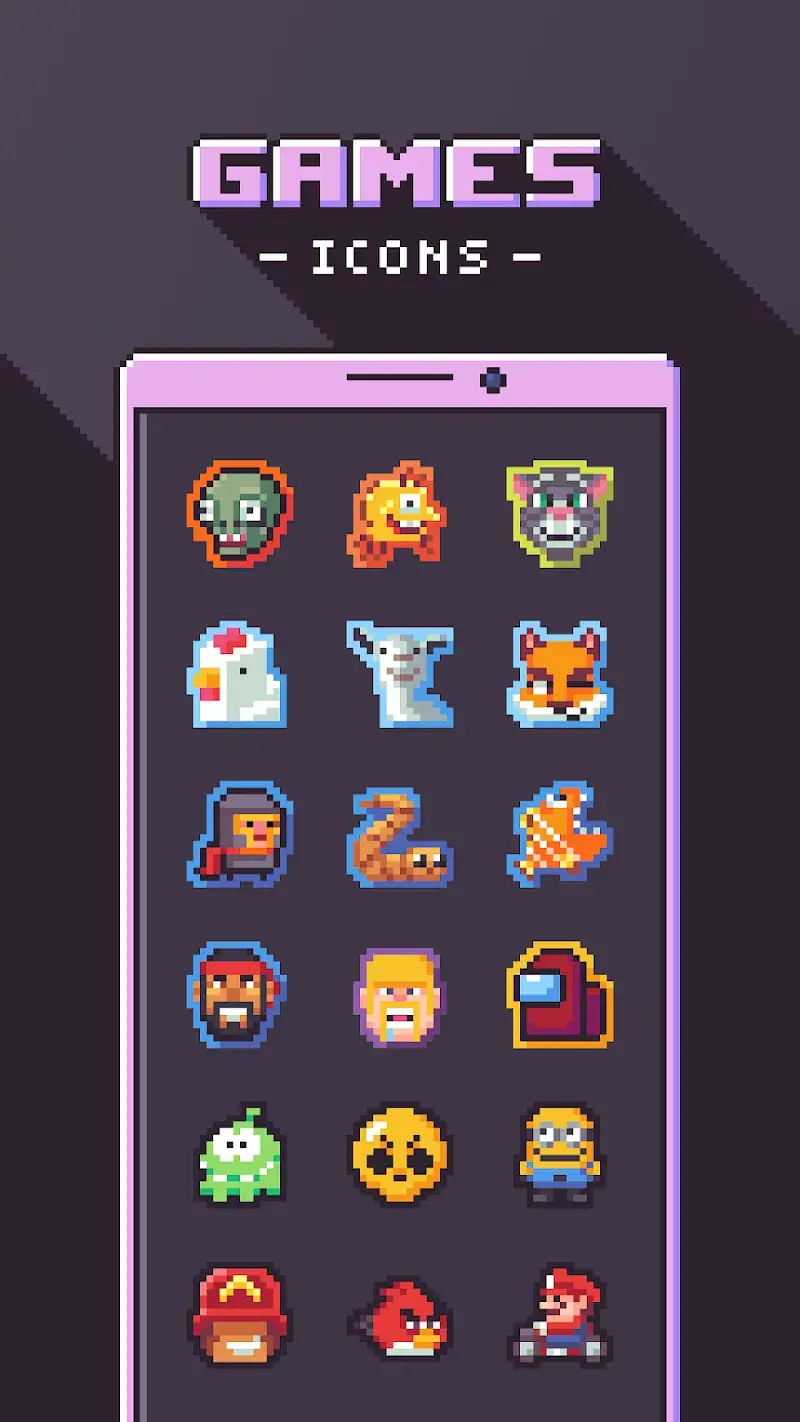 PIXELCON Icon Pack Mod is a personalization tool for Android that delivers a curated collection of over 3000 pixel art icons and approximately 50 matching wallpapers. It targets users seeking a retro aesthetic for their device's home screen, functioning as a standard icon pack application that requires a compatible launcher to apply its assets. The app's primary value is its cohesive, high-resolution pixel art design across a large library of icons.