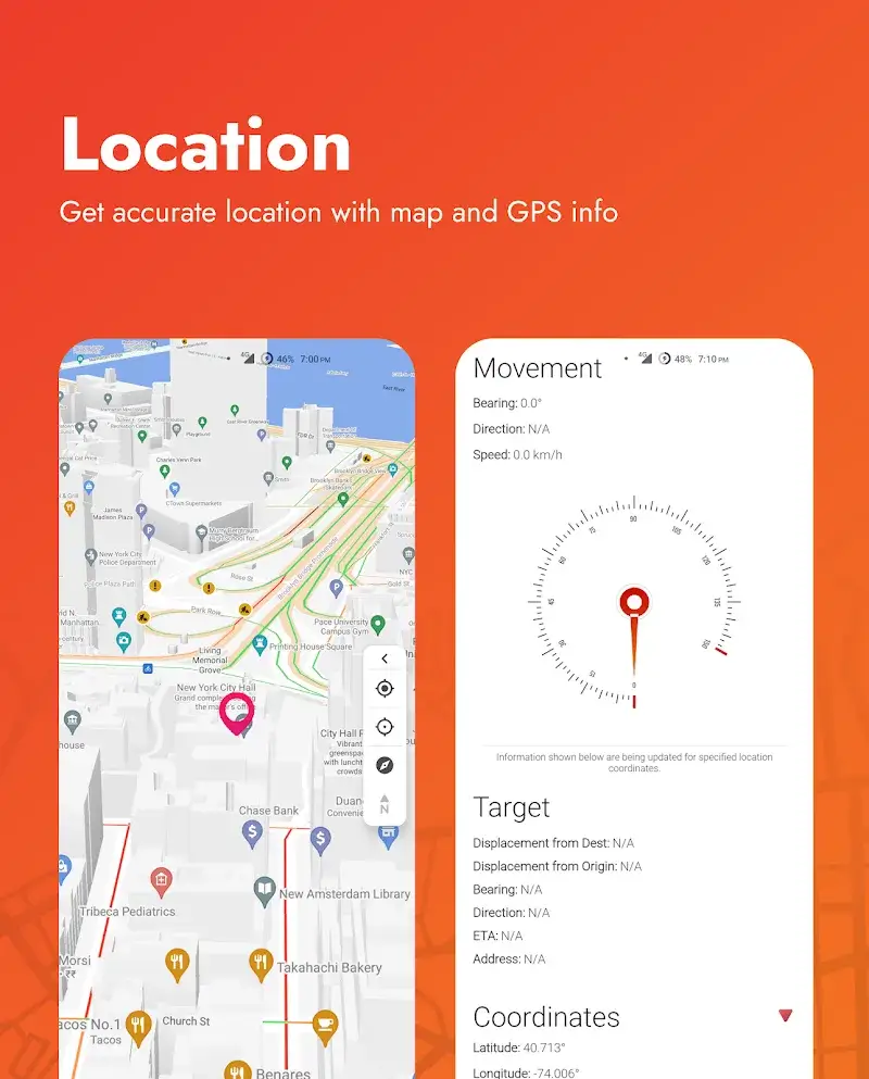 Upon launching the modified Positional GPS and Tools Mod APK, the Pro status is applied automatically. No manual activation or mod menu is required. The interface will reflect the unlocked state, typically indicated by the absence of 'Upgrade' prompts and the immediate availability of all tools and themes.