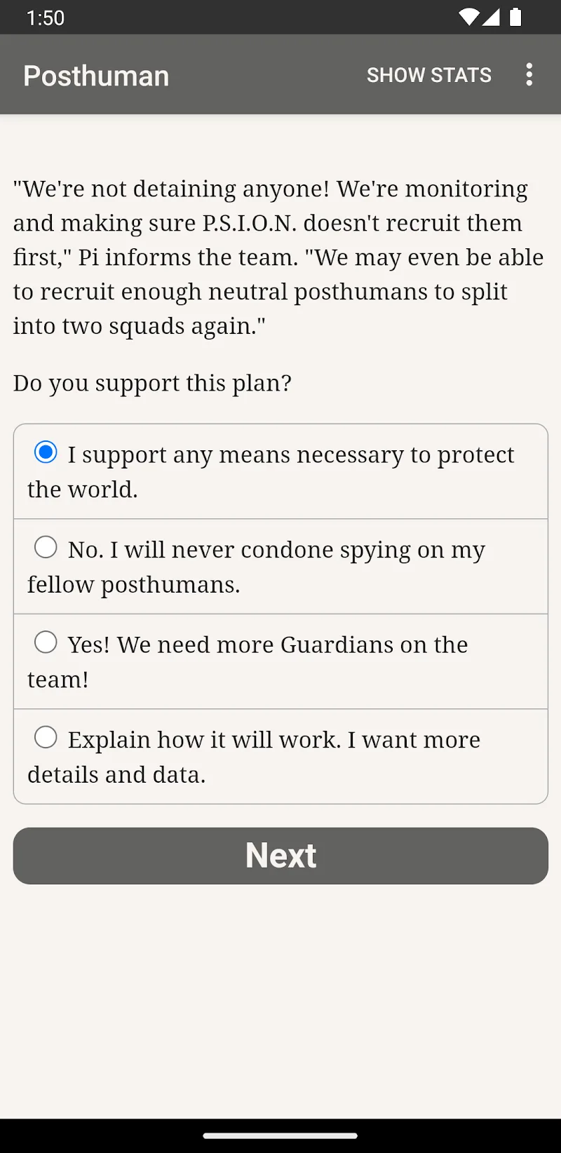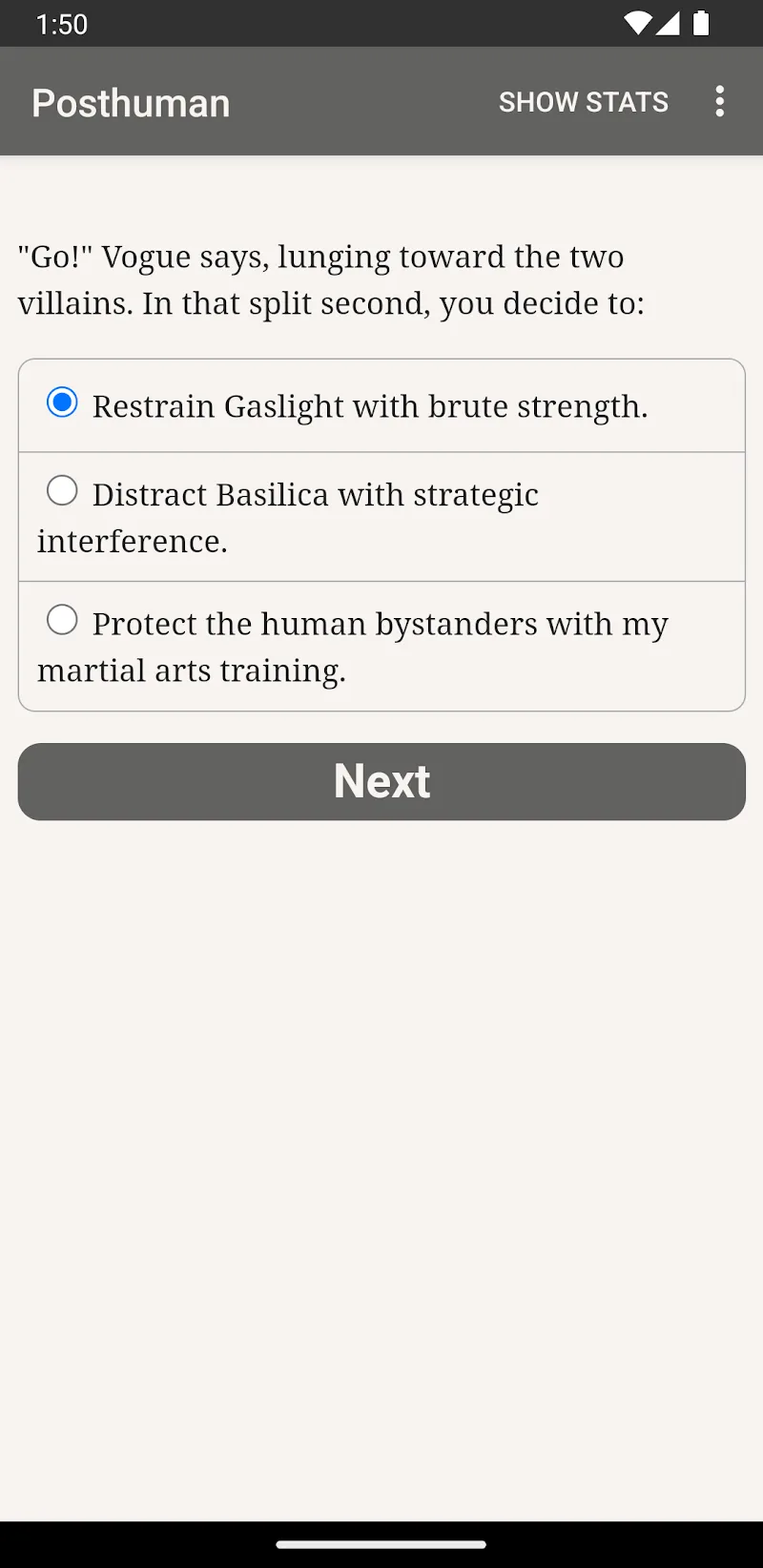 Posthuman Mod is a text‑driven role‑playing experience that presents a branching narrative set in a superhero universe. The base app limits access to certain story branches and displays advertisements between chapters. The mod version targets players who want full narrative coverage without interruption.