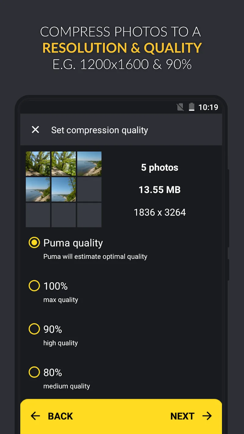 Puma Photo Resizer Compressor Mod is a utility for reducing the file size of JPEG and PNG images while attempting to preserve visual quality. It targets users who need to meet file size limits for uploads, emails, or storage. The app operates within the photography tool category, focusing on compression algorithms and format conversion.
