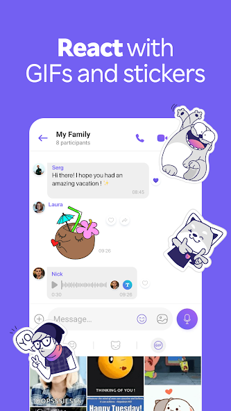 Words can't say much! Express all your emotions with more than a myriad of GIFs and more than 35,000 stickers from the Viber sticker market, Call landlines, non-Viber users, or anyone who doesn't have an internet service or a mobile phone with Viber Out's low-cost service. Viber is not meant only for free talk and text but also for international calling!