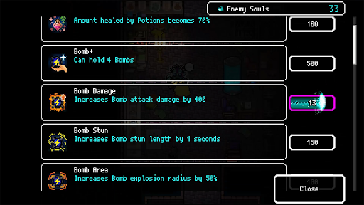 The main task of the player is to dodge the attacks of monsters and keep the maximum amount of HP for the main character. Besides, some Dodge roll operations with large rectangular buttons are also built-in. You can take advantage of these maneuvers to do somersaults in a narrow range to effectively dodge damage from enemies.