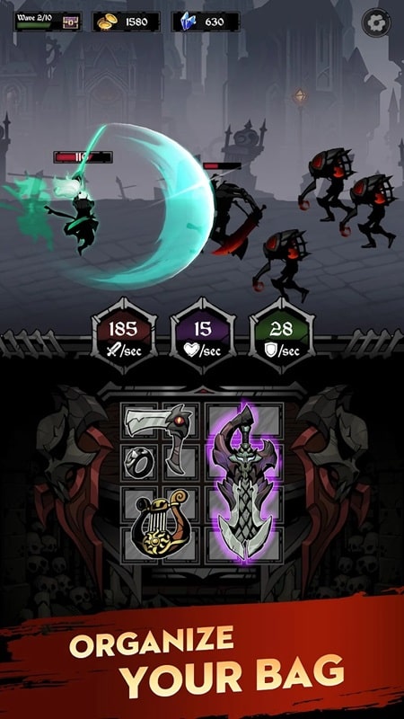 The relics contain mysterious powers, becoming weapons for heroes to attack invading enemies. You have full authority to help them collect and use countless equipment such as swords, gloves, and arrange them in nine slots in the backpack. When summoning, you have a chance to receive items with qualities ranging from basic to objects with a golden or red halo around them. The more brilliant they are, the more stats they add, helping heroes evolve their strength and become stronger warriors. However, don’t be too busy summoning them because it will cost you a lot of coins, causing you to lose your combat advantage. Collect relics, constantly change equipment so that warriors can stop all enemies in Relic Bag APK.