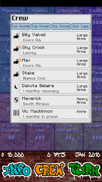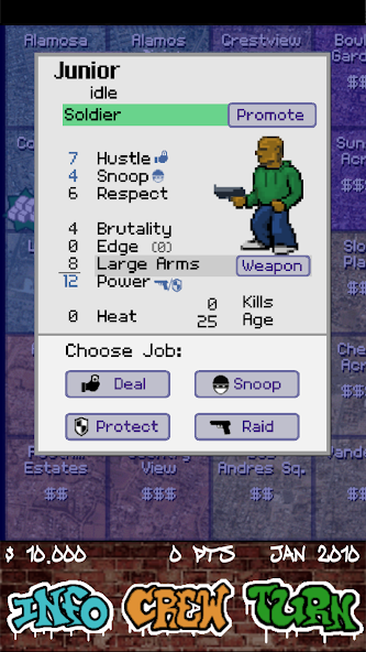 Respect Money Power Mod is an open-world crime simulation game where players build a criminal empire across three distinct regions, competing for influence through resource management and factional warfare. The core loop involves acquiring territory, managing assets, and engaging in strategic battles to earn respect, money, and power. This title targets players interested in progression-based sandbox games with a strategic management layer.