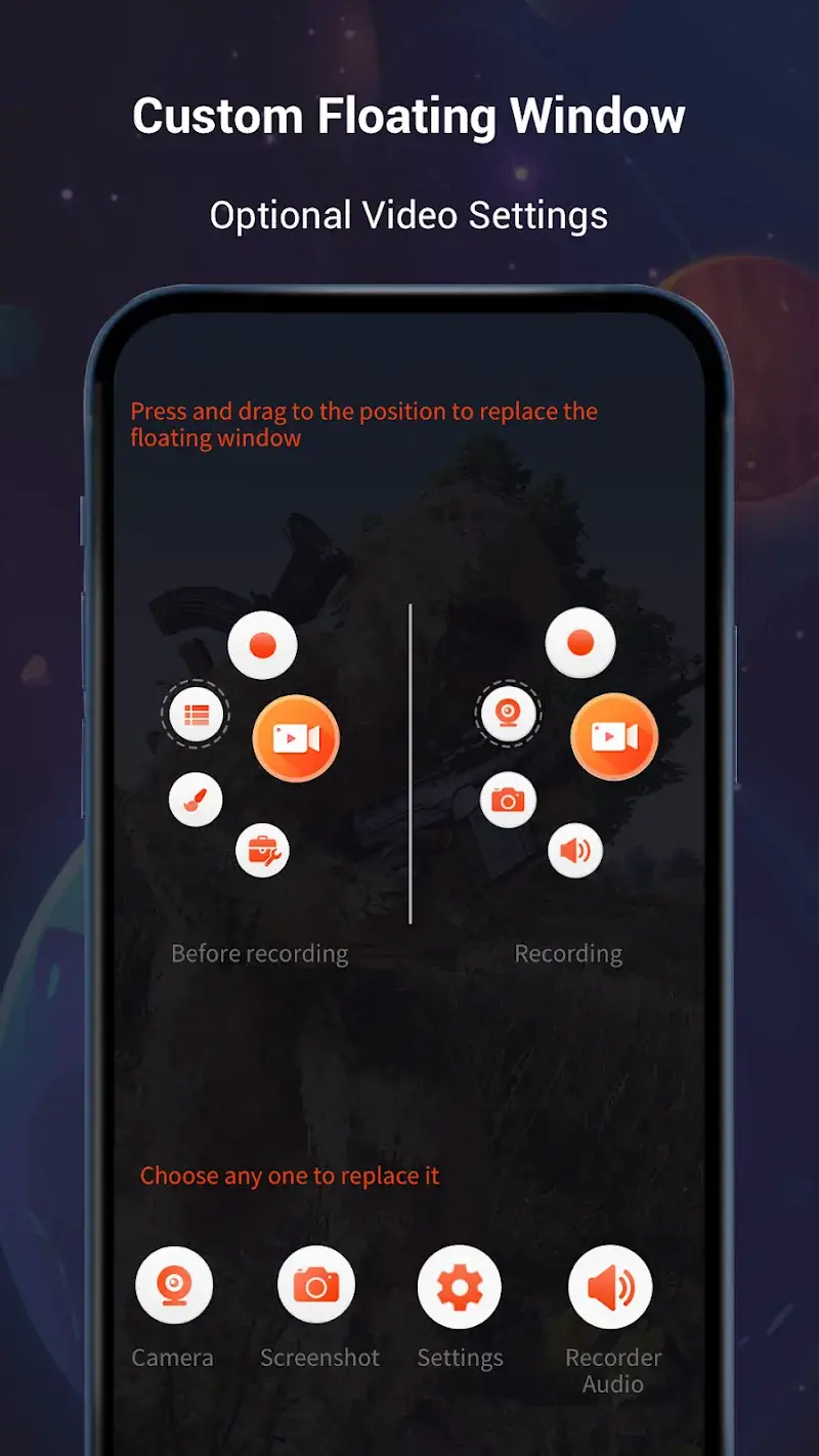 V Recorder Mod requires Android 5.0 or higher. The APK file size is approximately 128 MB, with additional storage needed for recorded videos and project files. Root access is not required for installation or for the mod to function.