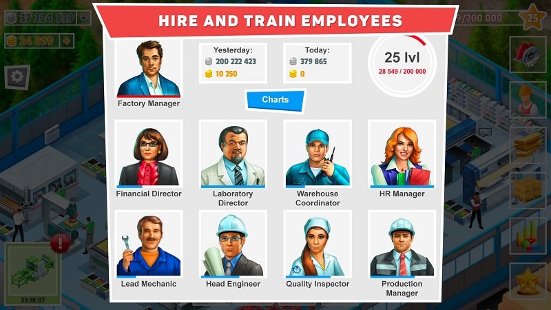 To operate the machines, the employees play a significant role. You will have workers classified according to their basic skill level. The more skilled workers are, the higher their wages will be. So you have to invest quite a lot for these high-value contracts. In return, you will find your output more and more than before. Employees help increase the profits your business earns over some time. Therefore, do not be afraid to spend money to unlock high-quality workers. Instead, they will make you grow faster than in the beginning without spending too much time.