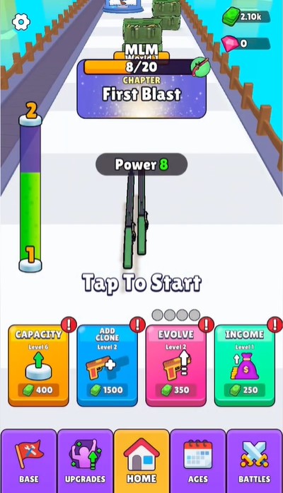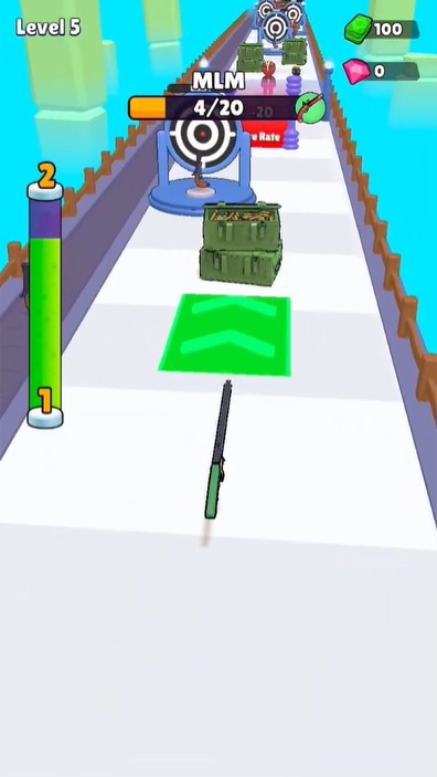 The items appearing on the runway are diverse, players can shoot at them to collect resources or destroy them. For example, ammunition boxes increase the player’s ammo count if hit, allowing them to shoot all targets ahead. Evolve your weapon by dealing 12 damage to the red gate, you only receive the evolution skill if you deal enough damage, otherwise you won’t receive anything. These evolution points can increase the player’s weapon’s firing speed, damage dealt to targets, magazine capacity, or range. Additionally, Trigger Up MOD 1.7.2 will place a large amount of money right before the finish line, the more damage you deal to the obstacles there, the more money you receive.