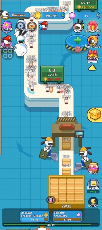 In each factory, Tukier Factory Inc MOD APK will give players tasks to complete, which will mainly revolve around the number of customer orders such as selling many products, transporting goods to the required location quickly. To be able to complete these tasks, players need to have a quality staff. The employees that you can upgrade are porters, ice makers, flour dividers, and packaging staff. At each level, you will have to spend a certain amount of gold depending on the level that the employee has. When reaching a new level, the speed of the employees will increase, thereby improving productivity.