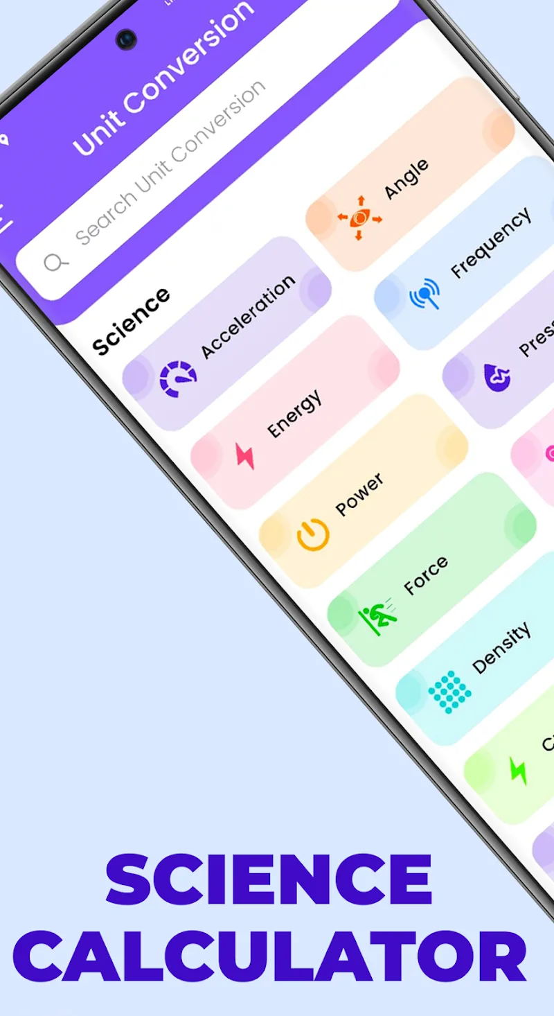 The modded version of Unit Calculator Premium Mod loads with the premium interface immediately. There is no separate activation step or mod menu. All features listed as 'Premium' or 'Pro' in the official app's settings or category list are available upon first launch.