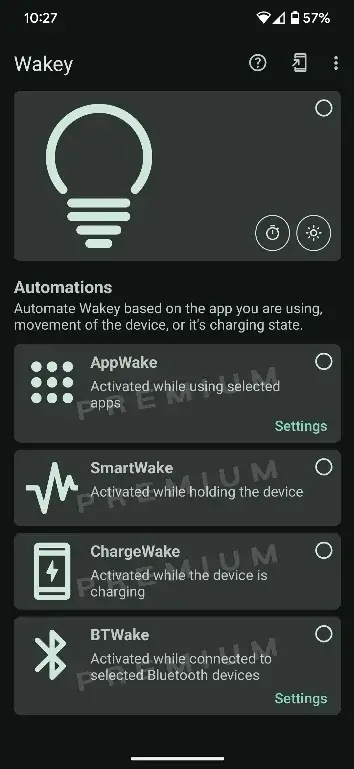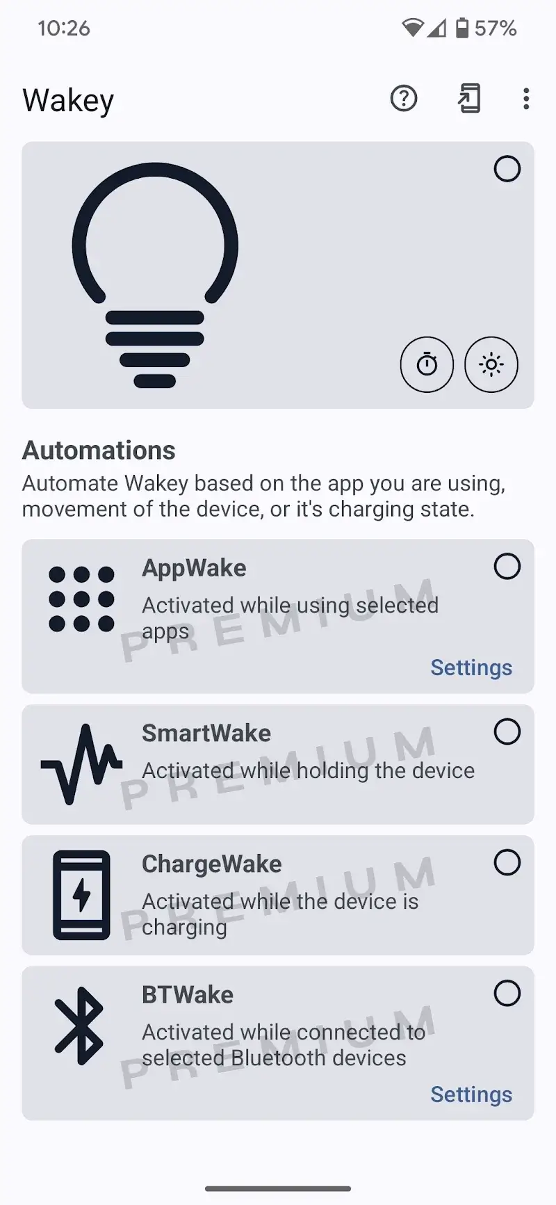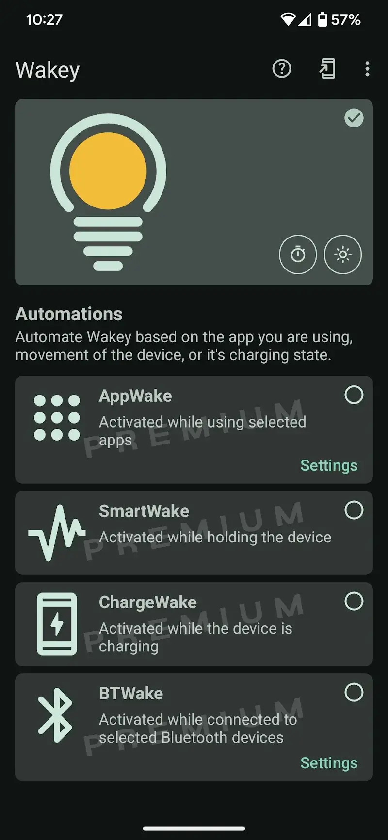 The modded features are integrated into the app's core interface. Upon launching Wakey Mod, the premium status is applied automatically. There is no separate mod menu to activate; the unlocked features appear as standard, functional options within the alarm creation and settings screens.