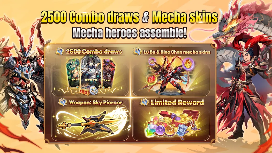 - Todo Desbloqueado: Todos los héroes, armas exclusivas y skins (incluidas las de edición limitada como 'Lu Bu (Demon) - Emperor of the Wasteland') están disponibles desde el inicio.